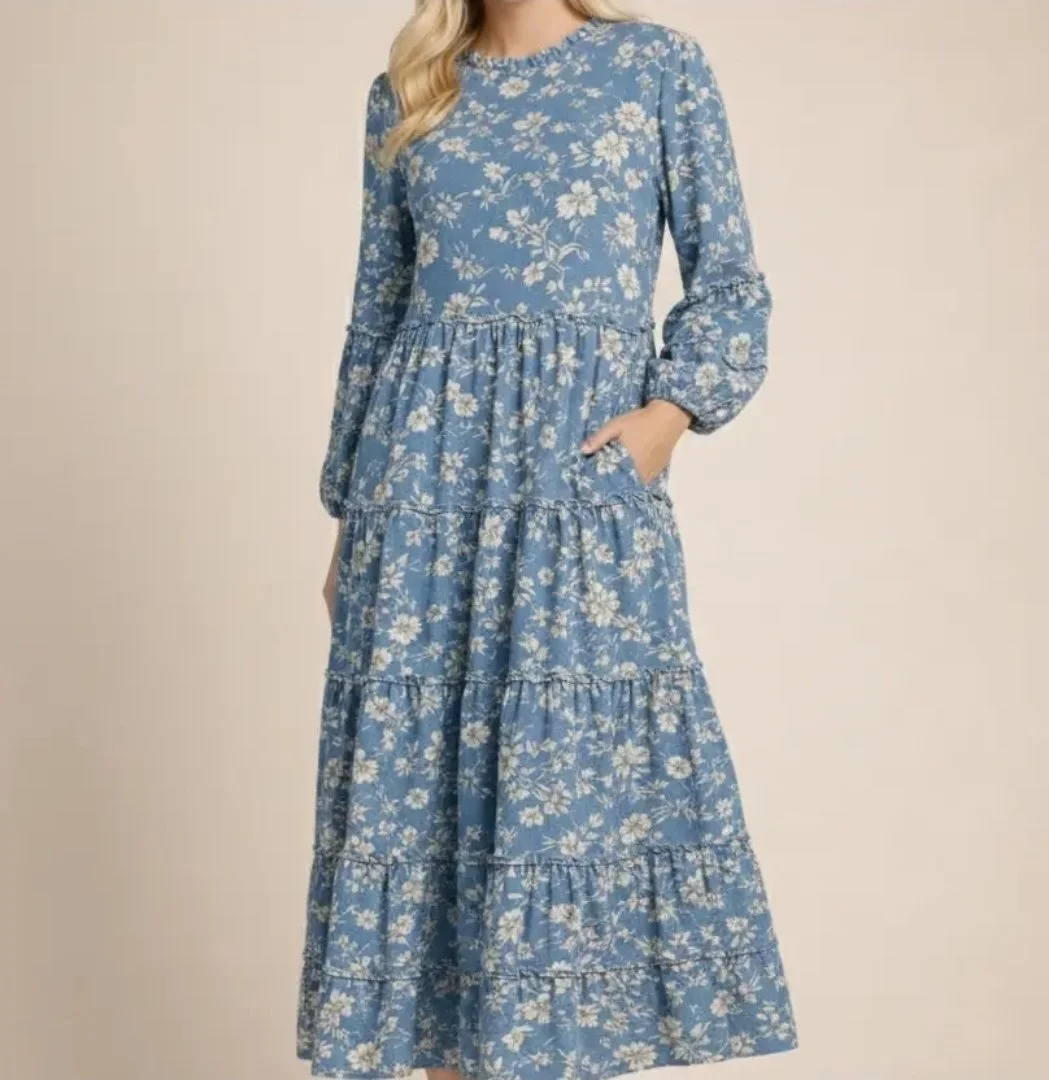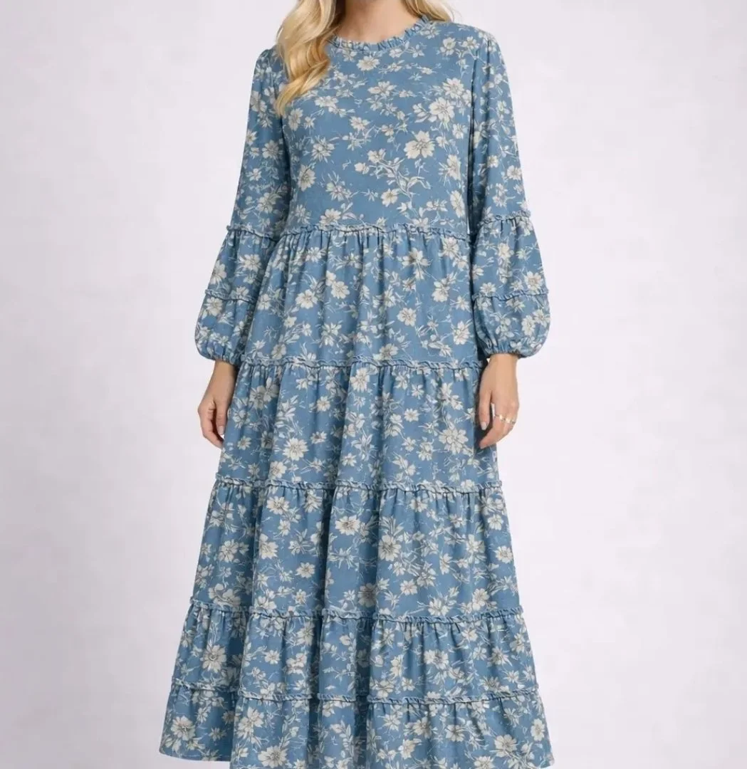 This Spring Floral Maxi dress is a delightful blend of comfort and style. The dress features charming ruffle details, creating a touch of whimsy. The soft floral print in two complementary colors adds a touch of elegance, making it perfect for any occasion. The comfortable fit ensures you'll feel as good as you look all day long.